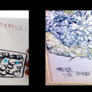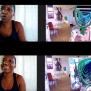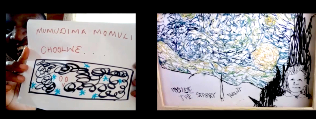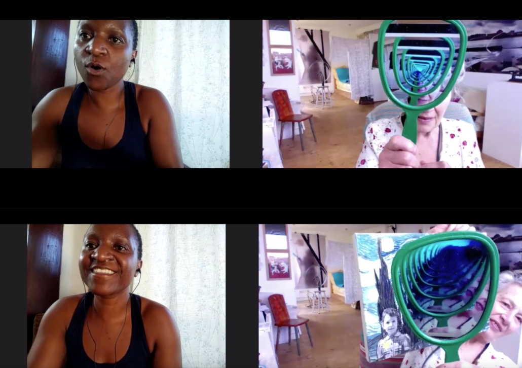 Through 2020/2021 I had regular zoom conversations with the Zambian artist, Serah Chibombwe. After several sessions, we planned that instead of our usual spoken exchange of ideas, we would do some sessions as a recorded zoom performance away from the usual strictures that dialogue imposes. We both have vivid childhood memories and alternative names, Chana and Maambo, with which we identified as children. We decided to speak to each other from these childhood selves and see what unfolded from this space. Although we did not discuss it in advance there were several coincidences in what came up between us. We each brought materials and ideas to the session to stimulate our relationship and visions in this childhood exploration. Both of us were born and grew into adulthood on the red earth of Zambia but we came from very different times and perspectives. Alex Eisenberg edited these sessions, funded by the organisation Future’s Venture.