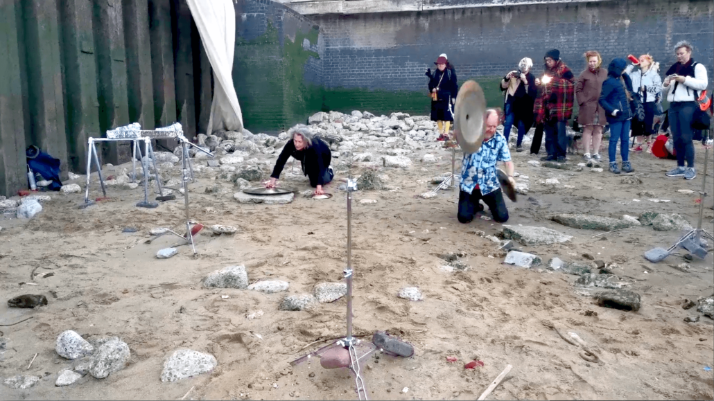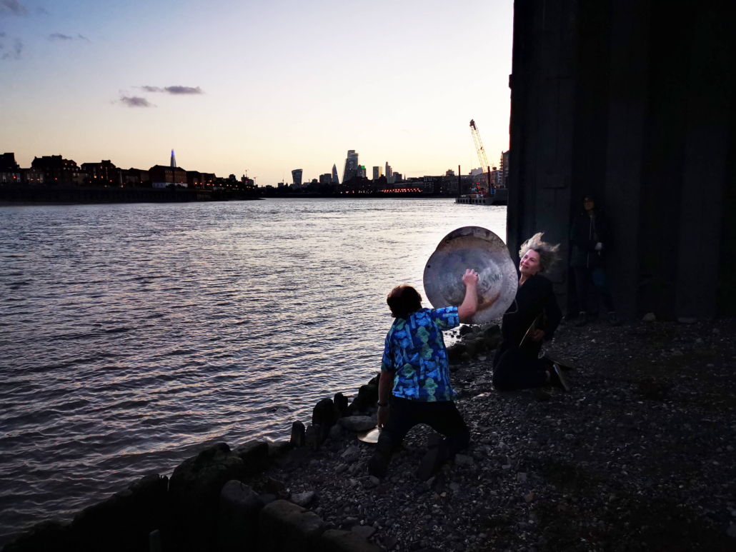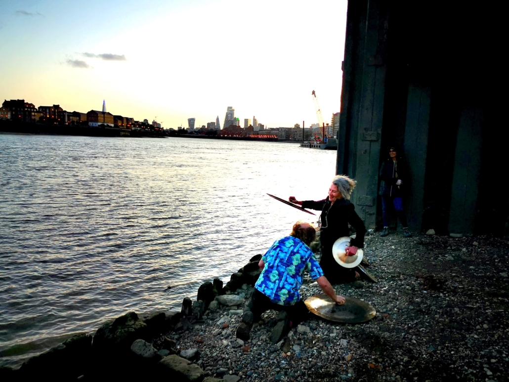 The 8.12 overture at 8.12 pm, beginning at the moment of the height of the Full Thunder moon (Anglo Saxon name of this moon), the second beginning at the moment of the Dark moon, 21.06 pm, (greatest magnitude of penumbral lunar eclipse), the third beginning at 21.19 pm, the moment of sunset and the final gong salutation at 21.34 pm, the moment of lowest tide at Limehouse foreshore, ending with a flaming sambucca toast to each of these sun and moon actions and interactions.